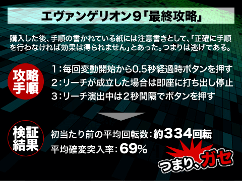 今回紹介するのは最速情報として売りに出されていた「大海3スペシャル絶対攻略」なる代物と、依然として多くの攻略法がある「エヴァ9最終攻略」というふたつだ。