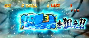 パチスロ獣王王者の覚醒のプレミアボーナスの「象ボーナス」は大量ゲーム数獲得の大チャンスとなっています。消化中は高確率で象絵柄が揃いますので、毎ゲーム叩きどころでパチスロ獣王王者の覚醒の攻略要素が含まれています。9枚役3回入賞で終了なのでガンガン象を揃えていきましょう。下記は象ボーナスの実戦データです。