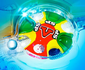 ④.前項緑穴経由、縦型回転体役物は「青穴:ハズレ 赤V穴:V大当たり」