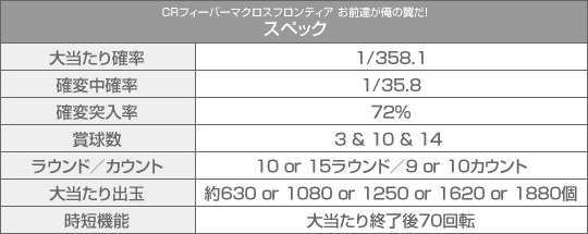 CRフィーバーマクロスフロンティア お前達が俺の翼だ スペック