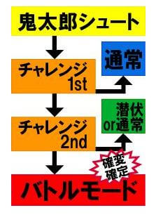 ここを突破出来れば6R系大当りが確定し、鬼太郎が選ばれればその期待度がアップする。1st突破後はチャレンジ2ndが発生。ここの結果によって移行先が大きく異なる。
