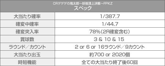 パチンコ ゲゲゲの鬼太郎 妖怪頂上決戦 スペック