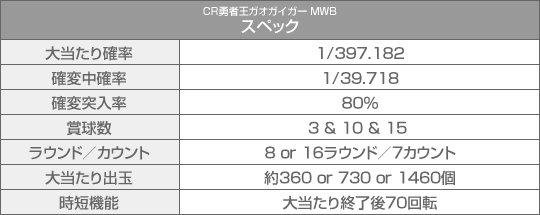 なお本機の目玉ともなる勇者王モード中は、味方の勝利で確変が継続する仕組み。