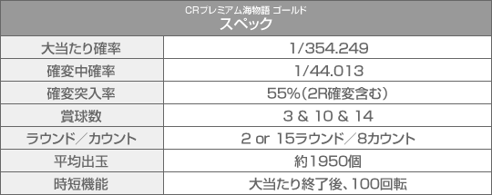 CRプレミアム海物語 ゴールド パチンコ機種 メーカー 三洋物産 導入日 2011-10-03 パチンコ・パチスロホルコンプログラム完全撃破-ホルコンプログラム撃破打法- 2011年、ついに海物語シリーズ最新作『CRプレミアム海物語』が登場。スペックはゴールドとプラチナの2種類があり、共にミドルタイプとなる。出玉を楽しみたいならゴールド、ミドルタイプを純粋に味わいたいならプラチナを選べばいいだろう。とはいえ、両方とも潜伏確変や小当たり演出など難しいことは一切ない。演出面では海シリーズとしては斬新な図柄ドラムとメインドラムの2層構造。また、「フォレストモード」は図柄ナビ予告が楽しめる。「クリスタルモード」はドラムの多彩な動きが味わえる。もちろん「海モード」も用意されているぞ。さらに、前兆予告となる「ドルフィンチャンス」や大当たりラウンド中の昇格演出も進化している。「プレ海チャンス」時は、シリーズ初の縦スクロール演出。どれもシンプルなゲーム性を持つ海物語シリーズの良さを活かしに活かし切っているだろう。 メルマガ登録でパチンコで安定して稼ぎ続ける「4つの裏技」プレゼント 実はパチンコで勝つことはとてもカンタン!実はパチンコで大儲けすることはとてもカンタンなのです!それじゃ、なんで自分はパチンコで勝てないんだって? それはアナタがパチンコ店の収益システムに組み込まれてしまっているから・・・ だけど大丈夫です!セブンあたるがアナタにパチンコで稼ぐ方法を教えます! 4つの裏技がもらえる! メルマガ登録はこちら パチンコ・パチスロホルコンプログラム完全撃破-ホルコンプログラム撃破打法-