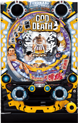 「CR GOD AND DEATH」は相撲の「ごっつあんです」を由来とした超横綱クラスの出玉ポテンシャルを持つMAXタイプかつAR搭載機。通常時の大当りに欠かすことの出来ない注目演出には「激四股ギミック」「真剣相撲リーチ」「唐草柄」といったアクションをお見逃しなく。AR搭載機なので、潜伏・小当りといった難しいわずらわしい機能はないのでシンプルながら、アツくなれるポイント盛りだくさんの機種に仕上がっている。