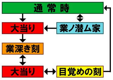 大当りラウンド中の演出に失敗すると突入する確変or時短のモード。33回転以降、確変だった場合は業深き刻に復帰するぞ。