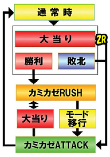 カミカゼRUSH中に大当りしなかった場合は、カミカゼATTACK(ショートST)に移行。