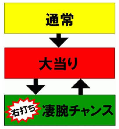 連チャン中は右打ちで消化し、実質7R(時短ナシ)に当選するまで連チャンが続く。