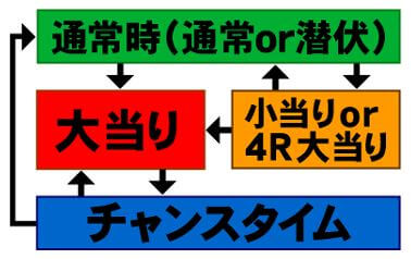通常時の小当りor4R大当り出玉ナシ(確変or通常)時に移行する。