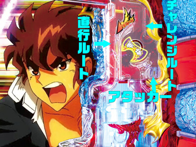 初当り時は基本的にチャレンジルートとなり、1個だけ「好機」と書かれたストッパーに貯留される。