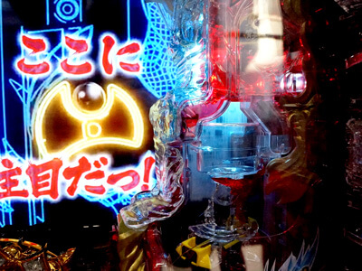 ヘソ当選時は3・7図柄揃い以外はガチVチャレンジボーナスへと移行。1R目に玉がストッパーに貯留され、開放された玉がV穴に入賞すればST獲得という流れ。なお、5R大当りと見せかけてハズレ復活というパターンもあるので、その場合は1.1%の6R確変に当選していたということになる。