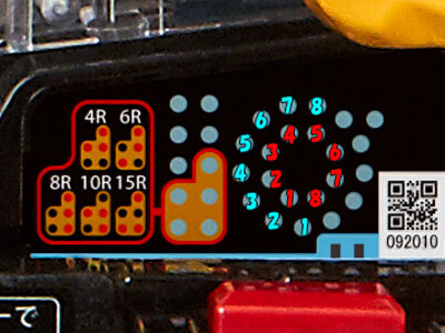 上記画像の青文字がヘソで赤文字が電チューとなっている。基本的にヘソも電チューも確変か否かは共通となっている。※ラウンドが異なる