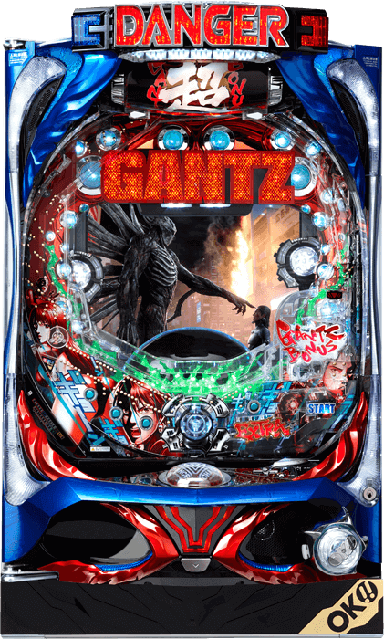 「ぱちんこ GANTZ」は2400から始まる衝撃と銘打たれたEXTRAを搭載。こちらは16R確変「超GANTZ BONUS」当選を契機に突入し、2400個獲得してもまだ出玉獲得がEXTRA中のバトル発生まで継続する。さらにEXTRA中に再度EXTRA RUSHに当選すればさらに出玉約2400個+EXTRA獲得となる。確変中は100てん取ったら「超GANTZ BONUS」に突入、こちらは星人撃破後の点数ゲット演出やぬらりひょん撃破、ルシファー出現など多岐にわたって存在する。通常時は「GANTZフラッシュ予告」、「GANTZゾーン」、「群予告」、「チェッカー柄」、「超転送」からの「超転送アタック」などに注目したい。その他にも狂暴な星人たちとのバトルリーチが用意されており、前・後編で展開。後編発展時に超転送が発生すれば期待度はさらにアップする。また宿敵ぬらりひょんとの最終決戦はぬらりひょんの形態が複数あり、加藤との対戦となる最終形態ならば信頼度アップ!?確変「サバイバルRUSH」ではリーチ成立で星人との戦い。現れる星人や攻撃する側などで勝利期待度が変化。敵の攻撃をかわせればRUSHは継続する。バトル勝利で確変大当り、100てん獲得で「超GANTZ BONSU」獲得となる。潜伏は非搭載なのでいつヤメても問題はないぞ。