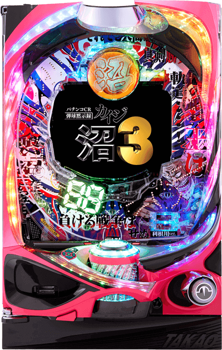 カイジシリーズ最新作「パチンコCR弾球黙示録カイジ沼3」は原作でも圧倒的人気を誇る、カイジに悪魔と言わせた「沼」にスポットを当てたマシンとなっている。本機の「沼」たるゆえんは、スペック、演出、ゲージすべてが圧倒的な沼となっており、遂に現実の世界に沼が出現することに・・・。リーチはすべて玉が穴に入るか否かを描いた「沼」のみで構成されており、シンプルながらも豊富なチャンスアップパターンによる組み合わせで大当りを狙う。またシリーズ初となる実写沼リーチが発生すれば激アツ必至、数千パターンと撮影した中から選りすぐりの映像で展開され、中でも必殺技出現は見逃せない。また玉喰い沼ゲージを採用。右打ち中は盤面右下のアタッカーと電チューの上に玉が吸い込まれていき、こぼしナシとなり、その見た目はまさに玉喰い沼・・・。新内規の中でも極限までヒリついたスペックに仕上がっており、潜伏確変も搭載されているのでヤメ時には十分注意しよう。