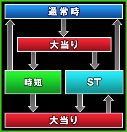本機のゲームフローは下記の通り。オーソドックスなV-ST機となっているので、ST権利獲得時はしっかりとV入賞させるようにしよう。