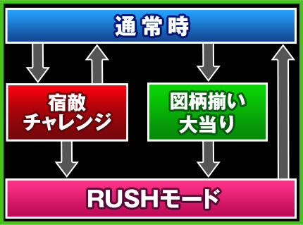 それぞれ勝利もしくは成功すればRUSHモードへと突入する。