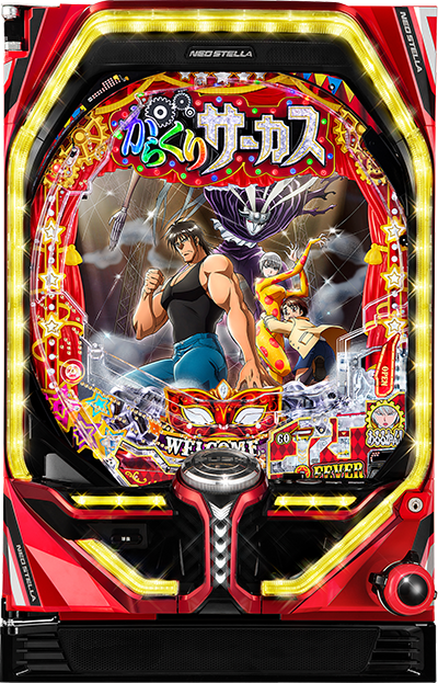 大人気作品「からくりサーカス」をモチーフとした「Pフィーバーからくりサーカス」は、大当り確率約1/319、右打ち中実質確率約1/45の1種+2種混マシンでRUSH突入率は約75%、初当り含むすべての大当りが3000個or1500個払い出しと一撃爽快なマシンに仕上がっている。