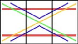 上段・下段・右上り、右下り、小山、小Vとなっており、中段は無効ラインとなっている。