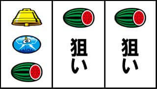 超激アツ!中・右リールにスイカを目押しし、ハズレればボーナス確定。例え揃ってしまっても、同時当選のチャンスがあるのだ。