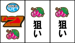 中リール適当打ち、右リールは赤7を目安にチェリーを狙う。目押ししてチェリーが3つ連続したら連チェリー、それ以外は単チェリー。