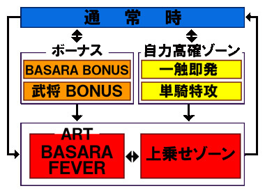戦刻ブーストや連撃乱舞をはじめ、多彩な上乗せゾーンが存在。ARTのゲーム数上乗せやセット数上乗せ抽選を行う。