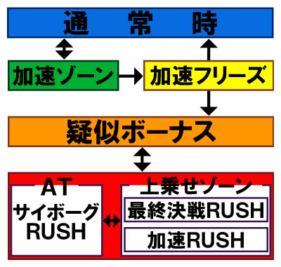 本機のメインATで、ボーナス中の抽選を契機に突入する。消化中は特定小役や小役の連続によって上乗せ抽選を行う。