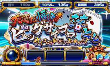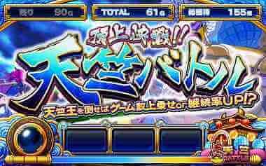 ベルの連続入賞で画面下部の天竺メーターが貯まり、MAXになると突入するバトル演出。天竺王撃破時は大量上乗せ、または継続率のランクアップのチャンス。