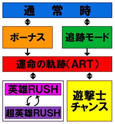 また、上乗せゾーン「英雄RUSH」は、毎ゲーム50G以上の上乗せが約50%でループする仕様で、更なる上乗せが期待できる「超英雄RUSH」へ移行する可能性もある。なお、超英雄RUSHが終了しても必ず英雄RUSHへ移行するため、上乗せゾーンのロングループにも期待できる。