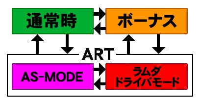 また、ART中のリプレイはすべて6択リプレイ(リプレイ・リプレイ・ベル)が成立しており、押し順正解時に液晶右上の起動ゲージがMAXに到達すれば「ラムダドライバチャンス」が発生。ここで更にリプレイの押し順を当てることができれば上乗せ特化ゾーン「ラムダドライバモード」へ移行する。