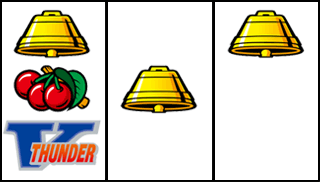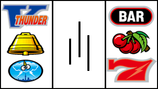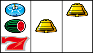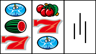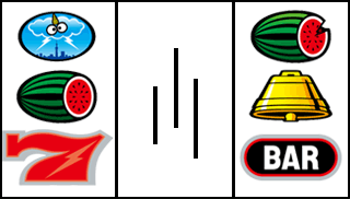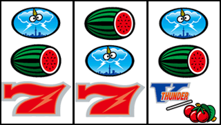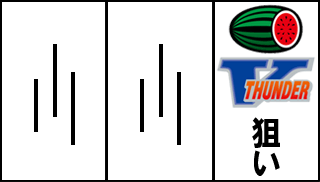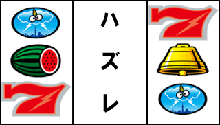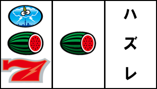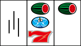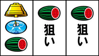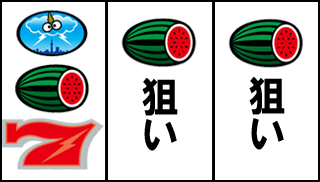 下段に赤が停止したら、中・右リールにもスイカを狙う。