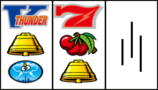 いずれかのリール停止時に発生する可能性があるイナズマ演出。発生するタイミングによって対応役が異なる。