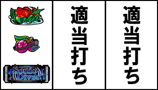 中リールはスイカを狙い、右リールは適当打ちでOK。ベルが中段揃いでチャンスベルとなる。またハズレ目でフラッシュすればチャンス目。