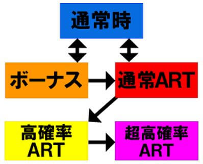 上乗せ性能の異なる3種類のARTを搭載しており、突入時はまず基本ARTにあたる「ギガントモード」へ移行。