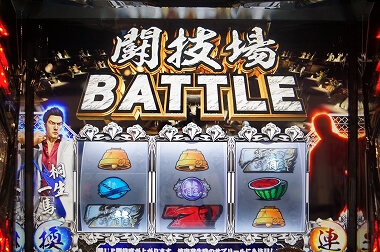 バトル演出が展開。成立役に応じて攻防が変化し、レア役や龍図柄成立で大チャンス。