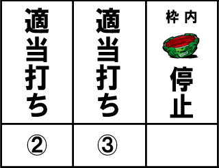 液晶右上に「チェリー・黄7・赤7/スイカ」ナビが発生したら以下の手順で消化。