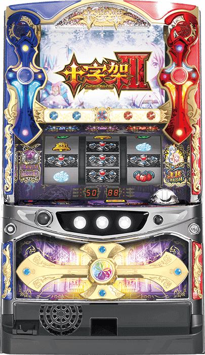 ・初期枚数は赤7揃い時は100枚以上、白7揃い時は200枚以上。通常時に十字架クロス揃いしてATに当選した場合は500枚以上スタート。
