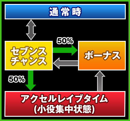 ・セブンスチャンス発生時にアクセルレイブタイム(集中)にも、ボーナスにも移行しなかった場合に移行