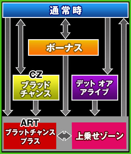 ブラッドチャンスはART突入のチャンスゾーンとなっており、バトル演出が展開。すべての敵を撃破できればART突入となり、基本的には消化中の押し順ベル正解やレア役成立で1体以上の敵撃破となるが、リプレイやハズレでもチャンスはある。なお、ブラッドチャンス中のBLOOD EYE揃いは残りすべての敵を殲滅し、ART突入が確定する。
