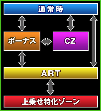 | 発動条件 | BB&ART間6周期(ゲーム数換算約1000G) | |