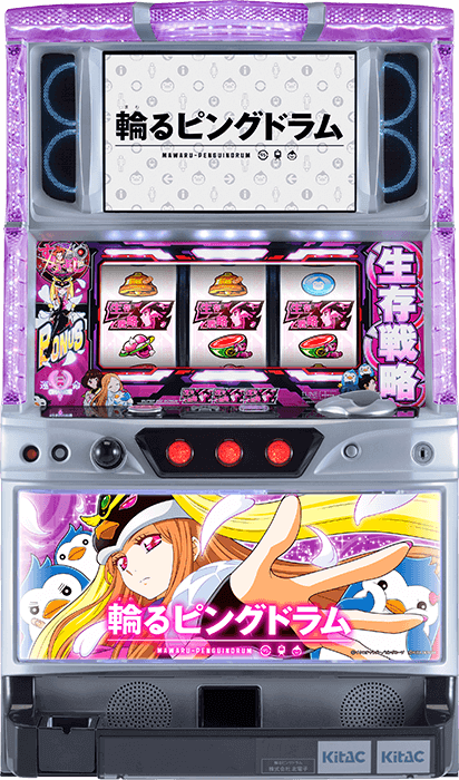 ボーナスはピンクドラムボーナス(約78枚)とBIG(約240枚)の2種類。ピンクドラムチャンス中は獲得したペンギンアイコンに応じてART抽選、BIGは成立した時点で次回ピンクドラムチャンス成立まで継続の超生存戦略+リンゴ10個以上確定。