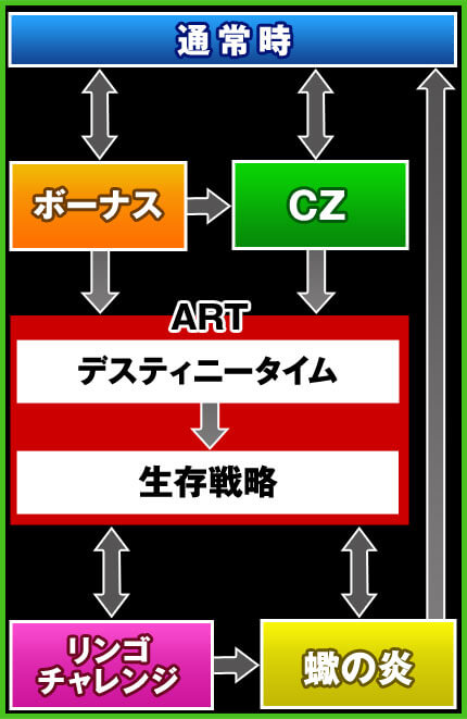 ART突入のチャンスゾーンは下記の2種類。いずれも滞在中にピンクドラムチャンス(ボーナス)を引ければART確定。
