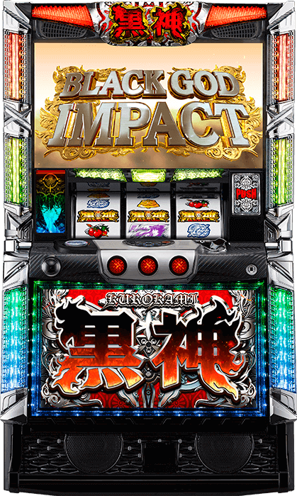 人気テレビアニメ「黒神 The Animation」とのタイアップ機となる本機は、ボーナスや疑似ボーナスを搭載しないART特化型タイプ。チャンスゾーンをショートARTとして搭載することで初当り確率は設定1でも約1/175と軽めなのが特徴的だ。ARTは純増約1.8枚/Gという性能で、初当り時はARTのゲーム数獲得ゾーン「ブラックゴッド・バトル」に突入。ここで得たゲーム数を持ってメインART「黒神遊戯」がスタート。消化中は、レア役成立時に「紫電一閃」への突入抽選を行い、紫電一閃中に7が揃えば再びブラッグゴッド・バトルに突入する流れとなっている。複数搭載された上乗せ特化ゾーンのなかでも特に強力なのが「ブラックゴッド・インパクト」で、こちらは“秒数上乗せ”“シンクロ上乗せ”“ST巻き戻し”など多彩な上乗せアクションが展開。平均上乗せ400Gを誇る本機屈指の出玉トリガーとなっている。