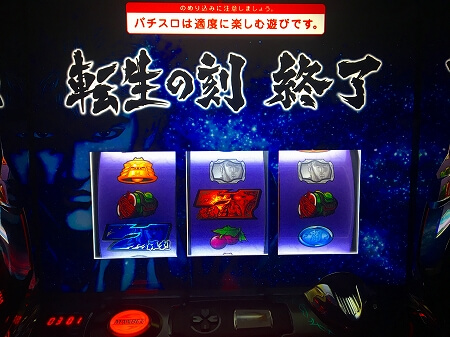 転生の刻中、レア役成立で停止間フリーズが発生する可能性あり。フリーズが発生した時点でBB以上が濃厚となるぞ。