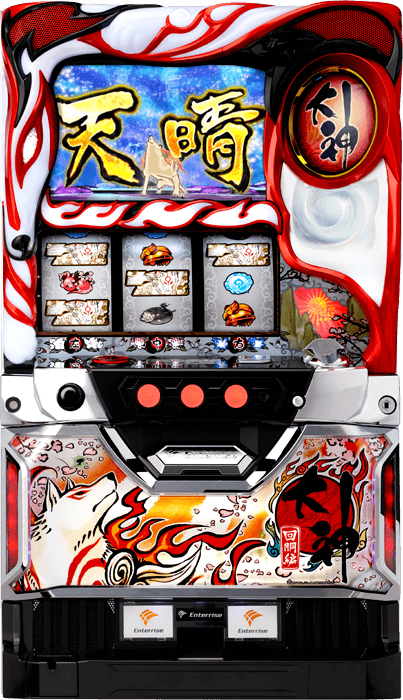 専用筐体“白野威”を採用した特徴的な紅白筐体を採用。筐体デザインに溶け込んだサブ液晶で様々な演出が展開するほか、液晶左側のアマテラスフェイスやリール右側にある妖ランプなど、多彩なギミックでアツイ瞬間を演出。
