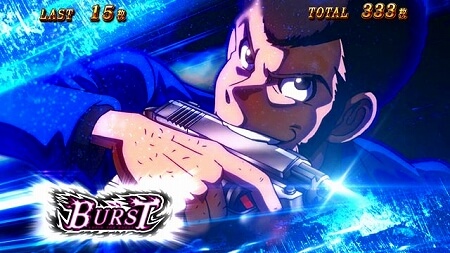 MB中はバースト図柄を狙うことで14枚→15枚と2Gに渡って小役を獲得することができ、カットインの種類によって順押しor逆押しでバースト図柄を狙う必要がある。