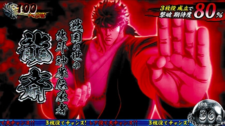 龍が咆哮するたびに死合の刻をストックし、平均ストック数は約4個と高性能。さらに、初当り時は突入のチャンスといった特典もある。